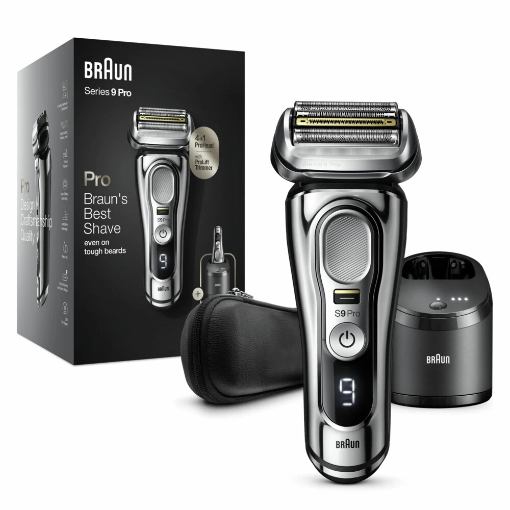 Braun Elektrisch Scheerapparaat Series 9 Pro 9466cc Met SmartCare Centers Werelds meest efficiënte elektrische scheersysteem (getest ten opzichte van toonaangevende premiumproducten), opnieuw uitgevonden voor nog betere prestaties. De Series 9 Pro is efficiënt en zacht met elke beweging, of je nu een baard van 1, 3 of 7 dagen scheert. Het scheerapparaat voor mannen beschikt over de unieke ProLift-trimmer die lang en plat haar optilt en scheert. Dit scheerapparaat wordt geleverd met een
